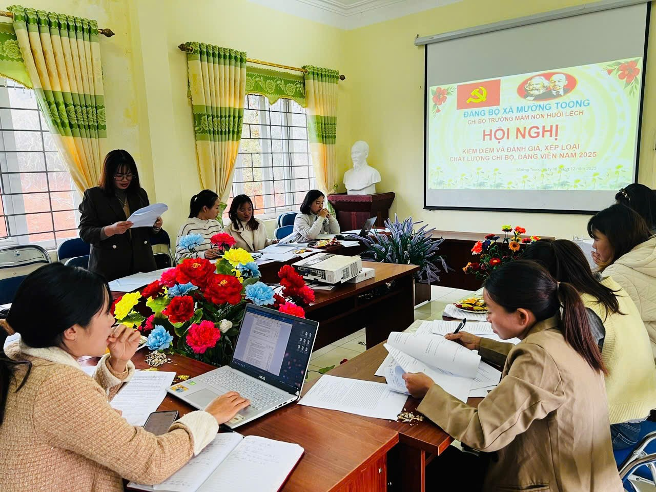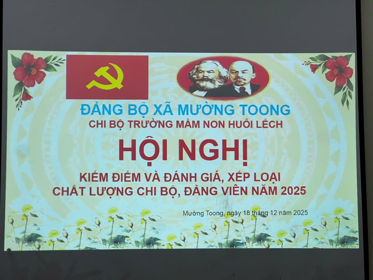 Thực hiện Hướng dẫn số 01- HD/ĐU của Đảng uỷ xã Mường Toong ngày 17/12/2025 về kiểm điểm, đánh giá và xếp loại chất lượng đối với tập thể, cá nhân quý VI và năm 2025, chiều ngày 18/12/2025, Chi bộ Trường Mầm non Huổi Lếch đã tổ chức cuộc họp kiểm điểm, đánh giá và xếp loại đảng viên cuối năm 2025.